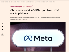 - 金融时报:中国正在审查 Meta 20 亿美元收购 Manus 的交易,极端结果或导致交易终止