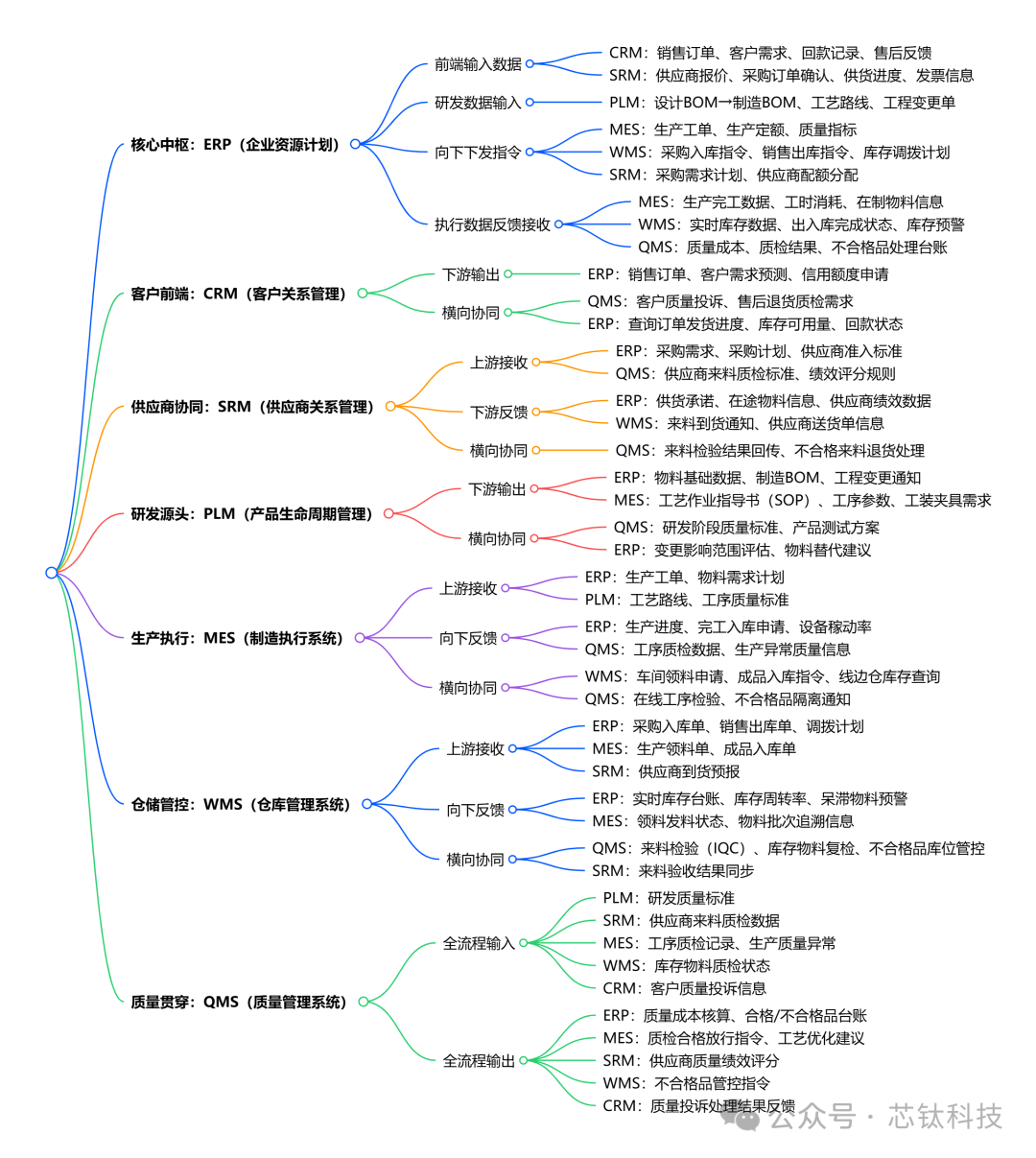 我们来将下企业进行数字化,涉及的七个系统:ERP、MES、WMS 、PLM、QMS 、CRM、SRM等系统,