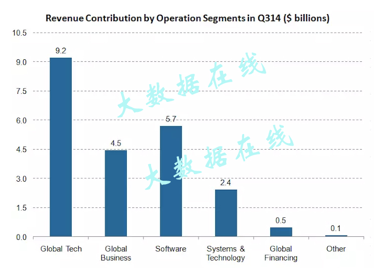 图一:IBM 2014年Q3营收分布情况图。
